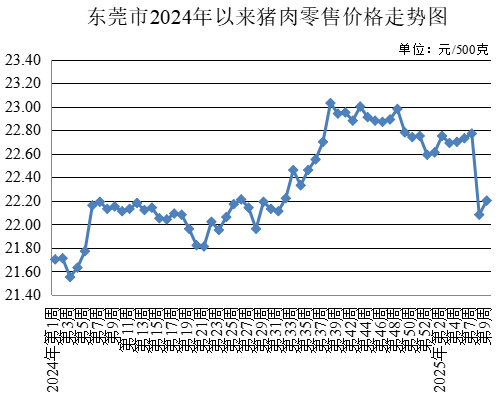 第9周,生豬出場價格為每公斤16.00元,較上周上升2.56%。總肉批發均價為每500克12.40元,較上周下降0.80%。