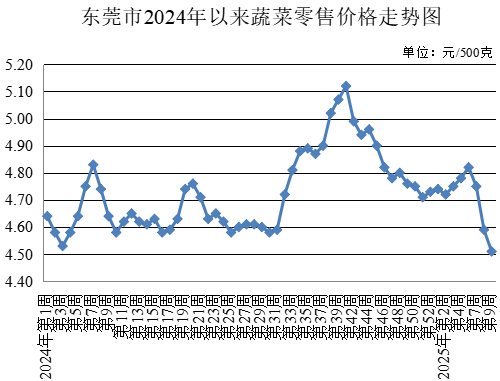 第9周,所監測的30種蔬菜農貿市場零售均價為每500克4.51元,較上周下降1.74%。其中,13種葉菜類農貿市場零售均價為每500克4.51元,較上周下降2.17%;17種非葉菜類農貿市場零售均價為每500克4.51元,較上周下降1.53%。